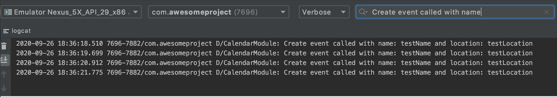 Po zakończeniu implementacji modułu natywnego i podłączeniu go w JavaScripcie, możesz wykonać te kroki, aby wyświetlić logi z aplikacji.