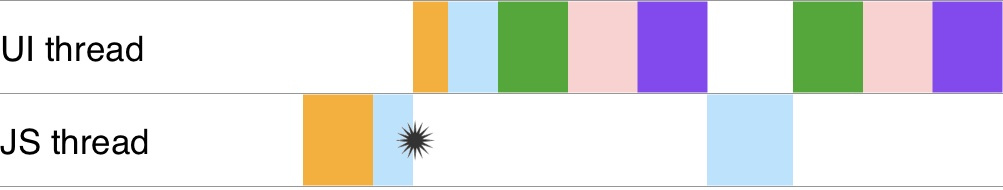 更新源自 UI 线程并跳过渲染阶段。详见 React Native 渲染器状态更新。
